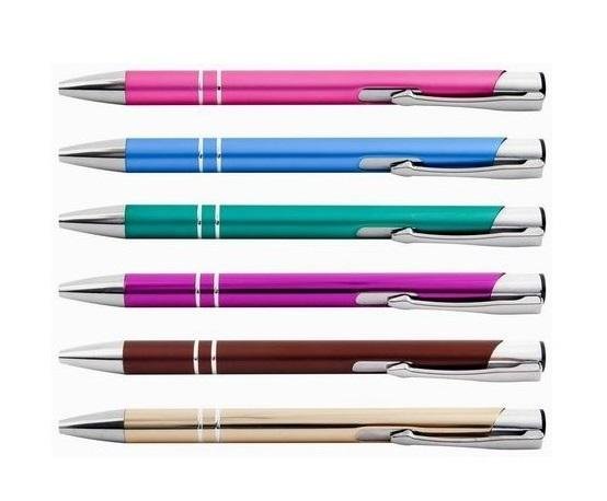 Metalowy długopis, automatyczny, srebrne dodatki, wymienny wkład F-Parker, niebieski kolor tuszu, grubość linii 0,7 mm, miks kolorów, 12 sztuk w paczce.