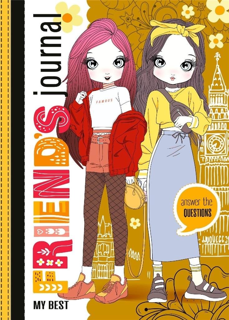 My Best Friend\'s journal - answer the questions. Ozdobny zeszyt w twardej oprawie z brokatem. Jest to rodzaj pamiętnika typu "złote myśli", gdzie znajdują się miejsca na wpisy 23 dziewczynek (przyjaciółek/koleżanek właścicielki). Jednakże pierwszy wpis należy do posiadaczki zeszytu. Każdy z wpisów zawiera pytania dotyczące między innymi danych personalnych, szkoły, zainteresowań, czy też marzeń. Wpisy zakończone są kolorowankami. Doskonała pomoc w nauce języka angielskiego.