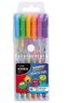 Zapachowe długopisy z tęczowym tuszem w 6 kolorach, które zmieniają się w trakcie pisania różowy, pomarańczowy, zielony, niebieski, żółty i fioletowy. Unikalną cechą długopisów jest owocowy zapach, który uatrakcyjnia produkt oraz tęczowy wkład, który sprawia, że dzieci chętniej po nie sięgają. Idealnie sprawdzą się w oznaczaniu tekstów oraz przygotowywaniu ważnych notatek. Zestaw 6 długopisów sprawdzi się w szkole, jak również w dekorowaniu kreatywnych prac plastycznych. Żelowy wkład z końcówką 0,7.