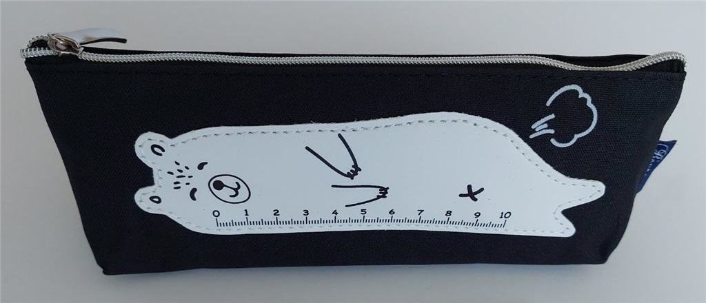 Piórnik z naszywką misia z linijką, zamykany na zamek. Doskonale nadaje się do szkoły. číst celé