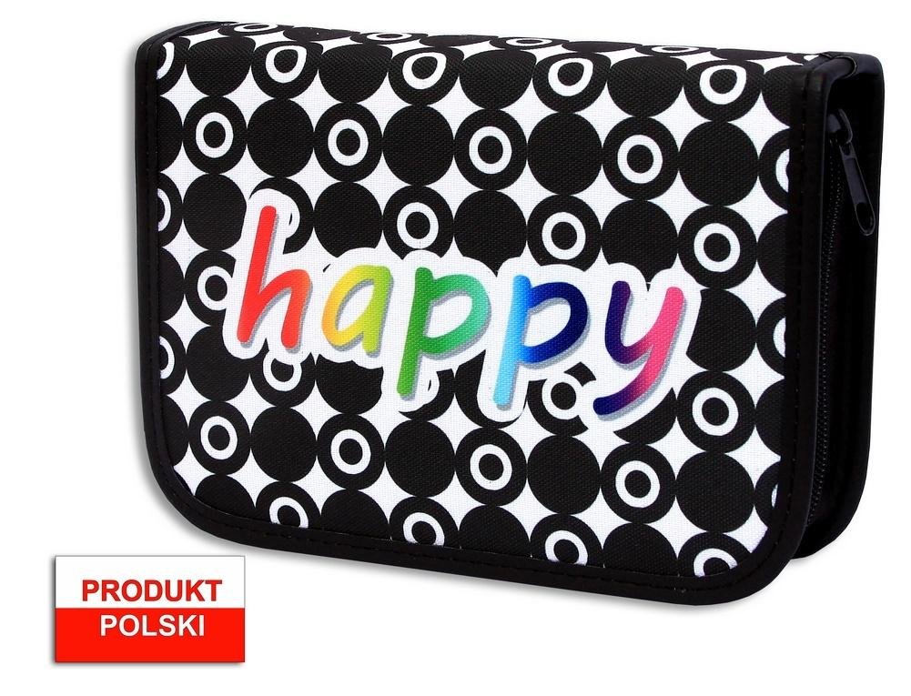 Piórnik twardy z 2 klapkami w środku wykonany z kodury, ozdobiony nadrukiem przedstawiającym grafikę HAPPY wykonanym w technologii sublimacji. W środku piórnika znajdują się gumki umożliwiające trzymanie długopisów. Piórnik o wymiarach 20x14x5[cm]. Piórnik bez wyposażenia. číst celé