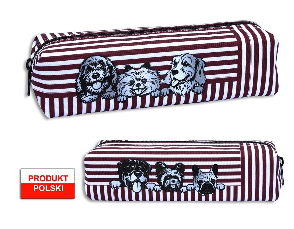 Piórnik klocek z kodury, ozdobionej nadrukiem przedstawiającym psy wykonanym w technologii sublimacji. Piórnik o wymiarach 21x6,5x6,5[cm]. Pakowany po 20 sztuk w 4 wersjach kolorystycznych. Piórnik bez wyposażenia.
