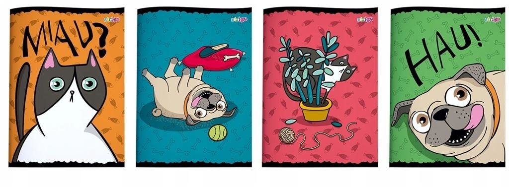 Opakowanie zbiorcze 10 sztuk. Mix wzorówPies i Kot - Zeszyt szkolny A5, 32 kartek. Gramatura papieru: 70, liniatura: kratka.