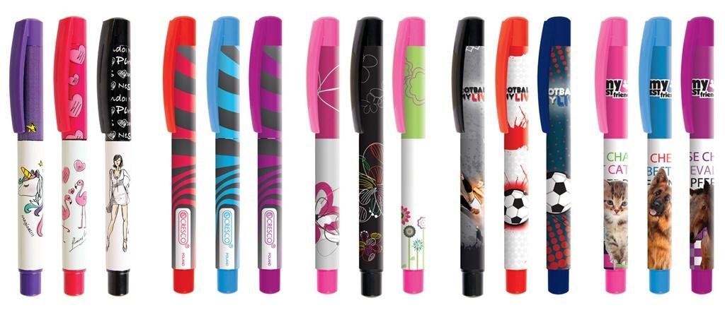 Mix wzorów, towar wysyłany losowo.Kolekcja College to klasyczne pióra wykonane z wysokiego jakościowo plastiku która obejmuje bardzo szeroką kolorystykę oraz wzornictwo.Pióro kulkowe na naboje atramentowe zasilane jest standardowymi nabojami pasującymi również do pióra wiecznego.Opakowanie...