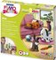 Se sadami FIMO kids form & play mohou děti vytvářet různé tematické světy podle detailních a dětem srozumitelných pokynů a vytvořit si tak svůj vlastní příběh ve světě her, který si vlastnoručně vyrobily. Bez ohledu na množství zkušeností s modelováním, které děti mají, si každé může vybrat svou úroveň obtížnosti (1=snadné, 2=středně obtížné, 3=obtížné) a dostane detailní, srozumitelný návod jak postupovat krok za krokem s množstvím obrázků. Obrázky odpovídají obtížnosti dané sady. Každá sada obsahuje čtyři balení FIMO Kids, pozadí, které se hodí k danému tématu, modelovací nástroj a brožurku s návodem. Tyto sady jsou mezi dětmi nejoblíběnější ze všech produktů z řady FIMO kids a jsou velmi vhodné jako dárek. Balení obsahuje: 4x FIMO kids v odstínech odpovídajících obrázku na krabičce, modelovací nástroj, kreslené pozadí, návod krok za krokem. FIMO kids je modelovací hmota, která se vytvrzuje pečením v troubě a která byla vyvinuta speciálně pro dětské ruce. Široký výběr produktů uspokojí všechny potřeby a úrovně obtížnosti. FIMO kids podporuje v dětech kreativitu a představivost tím, že jim umožňuje vytvářet si svoje vlastní hračky podle své fantazie. Vlastnosti produktu: Hmota je měkká, snadno tvarovatelná a dětem se s ní lehce a dobře pracuje. Není třeba ji předem zpracovávat, dá se použít rovnou z balíčku. Balena ve znovu uzavíratelných sáčcích, nespotřebované zbytky hmoty se tak dají snadno uchovávat a chránit před nečistotami až do dalšího použití. Široká paleta jasných barev, které můžete mezi sebou míchat a vytvářet tak nové odstíny. Obsahuje 8 praktických prolisů, které vam usnadní míchání nových odstínů. Bez zápachu. Vytvrzuje se pečením v troubě po dobu 30 minut při 110 C°, připraveno k hraní jakmile vychladne. Zlepšuje jemnou motoriku a představivost. Bezpečnost: FIMO kids má CE certifikát. FIMO kids splňuje směrnice EU o bezpečnosti hraček. Vypékat pod dozorem dospělé osoby. Po vyjmutí z trouby nechat vychladnout.