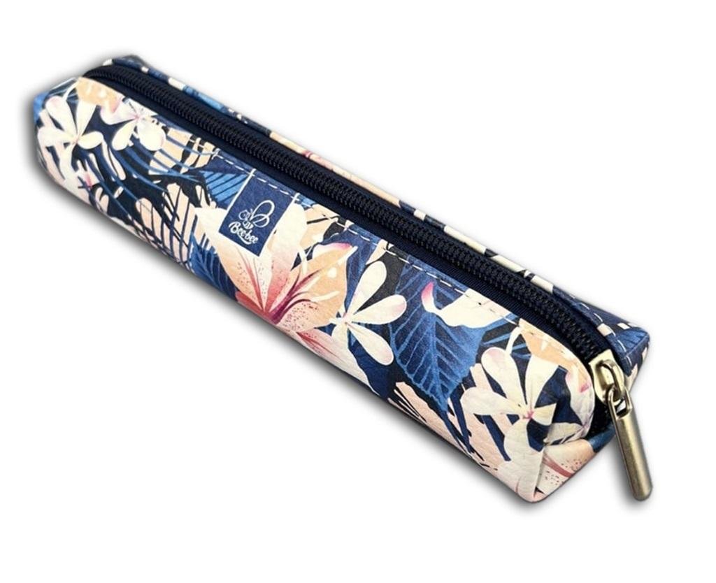 Piórnik mini prostokąt hibiskus na niebieskim