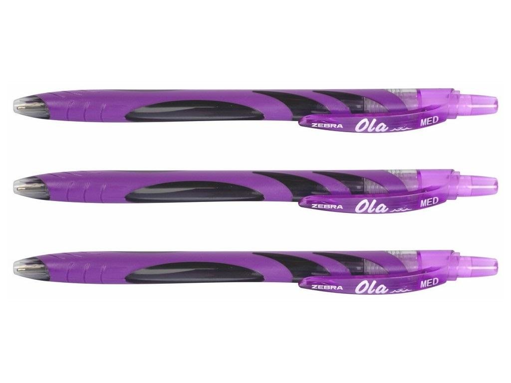Plastikowy długopis, automatyczny, wymienny wkład F-411, fioletowy kolor tuszu, grubość linii 1 mm.