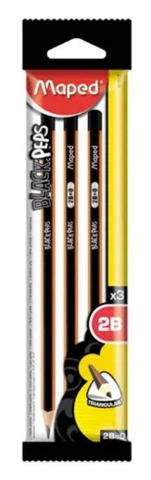 Ołówek BLACKPEPS 2B wykonany z drewna lipowego, ergonomiczny, trójkątny kształt, odporny na złamania grafit, czytelne oznaczenie twardości. Opakowanie zawiera 3 szt. JS.: 1 blister.