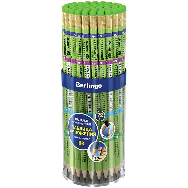 Ołówek wykonany z drewna lipowego, z gumką, zaostrzony. Nadaje się do pisania, rysowania i szkicowania. Średnica grafitu 2mm, twardość HB, okrągły kształt. Kolorowy nadruk z tabliczką mnożenia.