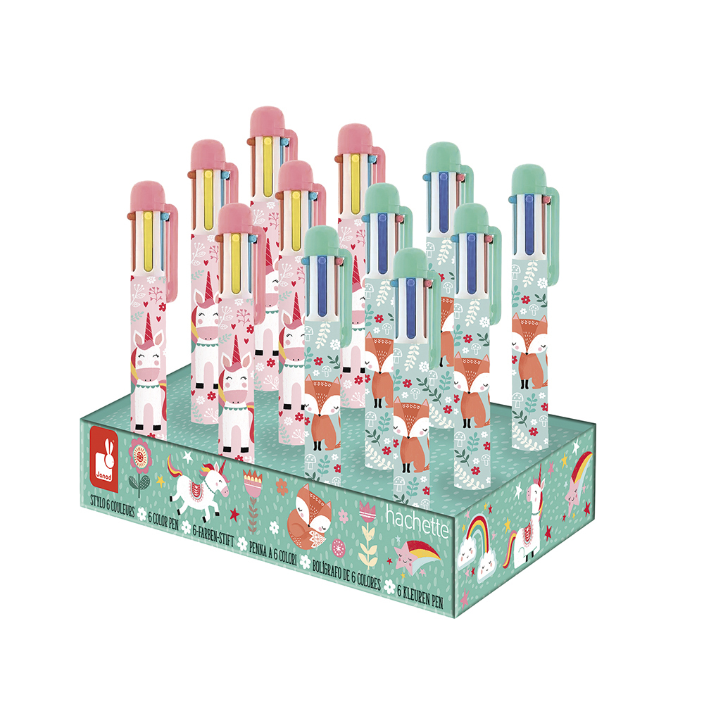 Janod DISPLEJ Vícebarevné pero 6 barev 2 motivy Jednorožec a Liška 12 ks