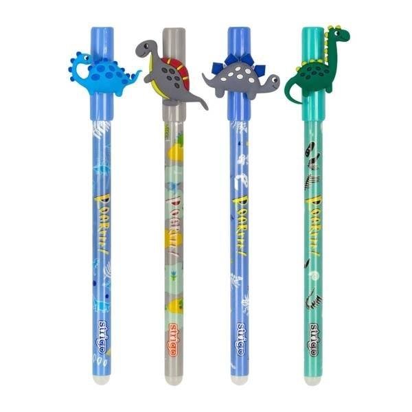 Wymazywalny długopis STRIGO ze skuwką z serii Dinozaury. Średnica końcówki piszącej 0,5 mm. W display\'u 36 sztuk po 9 sztuk ze wzoru.