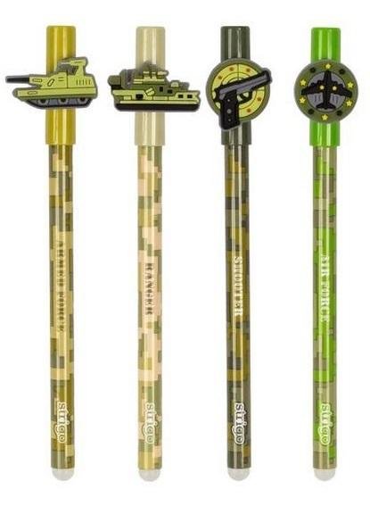 Wymazywalny długopis STRIGO ze skuwką z serii Militaria. Średnica końcówki piszącej 0,5 mm. W display\'u 36 sztuk po 9 sztuk ze wzoru.