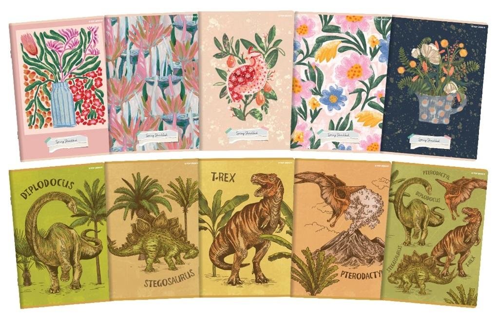 Matowa folia i wybiórczy lakier wypukły nadają okładkom elegancji. Zadrukowane okładki wewnętrzne doskonale korespondują z ilustracjami na przednich okładkach. Grzbiet zszywany zszywkami zapewnia trwałość zeszytów i wygodę pisania. Papier o grubości 70 g.