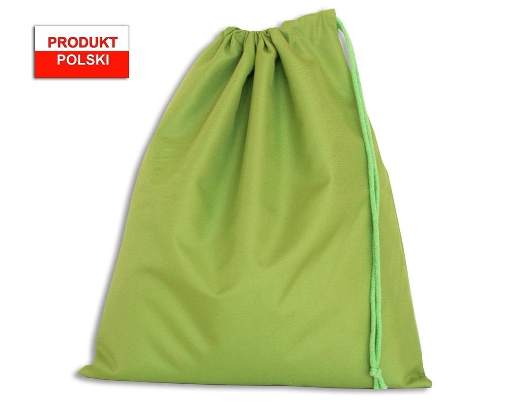 Worek na kapcie i obuwie szkolne, jednokolorowy. Wykonany z wytrzymałego materiału, tkanina powleczona poliuretanem. Wodoodporny. Wyposażony w sznurek bawełniany 5 mm. Zaciągany jednostronnie.