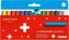 kredki woskowe z kolekcji Swisscolor wyróżniają się dzięki wyjątkowemu projektowi opakowania intensywne czerwone kartonowe pudełko ozdobione jest białymi krzyżami - szwajcarskim godłem