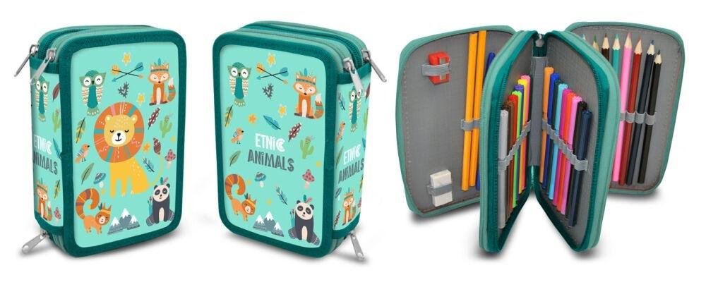 Piórnik trójkomorowy Jungle świetnie uzupełnia wyposażenie szkolnego tornistra.