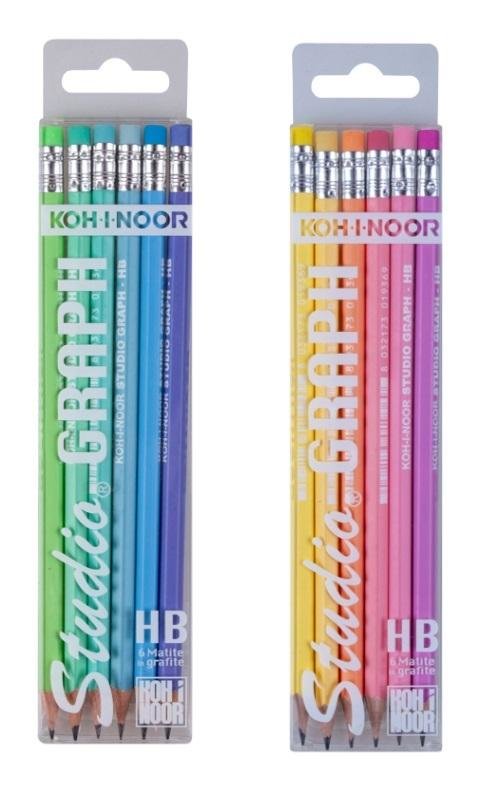 Ołówki grafitowe sześciokątne o twardości HB z gumką. Dostępne w zestawie 6 sztuk w pięknych pastelowych kolorach. Doskonałe dla dzieci w wieku szkolnym.