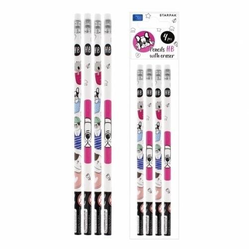 Ołówek nie łamie się podczas strugania, a gumka nie brudzi, ołówki to podstawowy produkt podczas nauki w szkole (rysowanie, matematyka, pisanie), łatwe w struganiu, nie łamią się, nie brudzą, uniwersalna twardość HB, każdy ołówek wyposażony w gumkę do mazania. Zestaw 4 ołówków z gumką z kolekcji STARPAK z grafiką w Minisy. Każdy ołówek zdobiony kolorową grafiką z ulubionymi bohaterami. Wykonany z trwałego drewna, zapewnia komfort rysowania i pisania. Służy nie tylko do rysowania i szkicowania, ale jest również niezbędny podczas lekcji matematyki, do nauki pisania, do robienia notatek na marginesach książek lub zeszytów. Dlatego tak ważna jest jego jakość. Dzięki wysokiej jakości grafit nie sypie się, nie brudzi i nie kruszy. Twardość HB sprawia, że ołówki STARPAK są uniwersalne i mogą być wykorzystywane zarówno do pisania, jak tez rysowania.