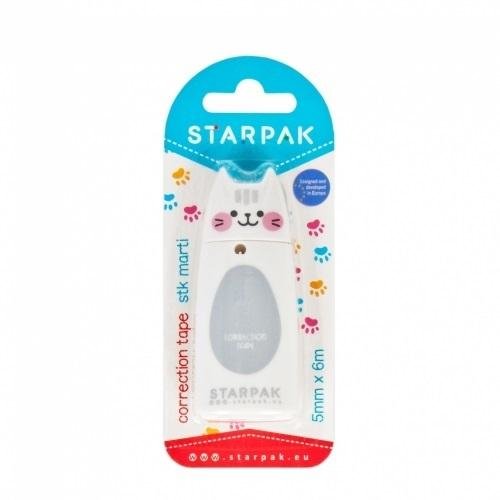 Korektor w taśmie w wesołej grafice w zwierzątko, długość taśmy to 6 m. Wysokiej jakości korektor w taśmie marki STARPAK o długości 6 m i szerokości 5 mm. Niezbędny element wyposażenia piórnika każdego pilnego ucznia. Z wizerunkiem zabawnego zwierzątka, który umili czas spędzony w szkolnej ławce. Zawartość opakowania: korektor w kształcie zwierzątka. Produkt wykonany z plastiku.