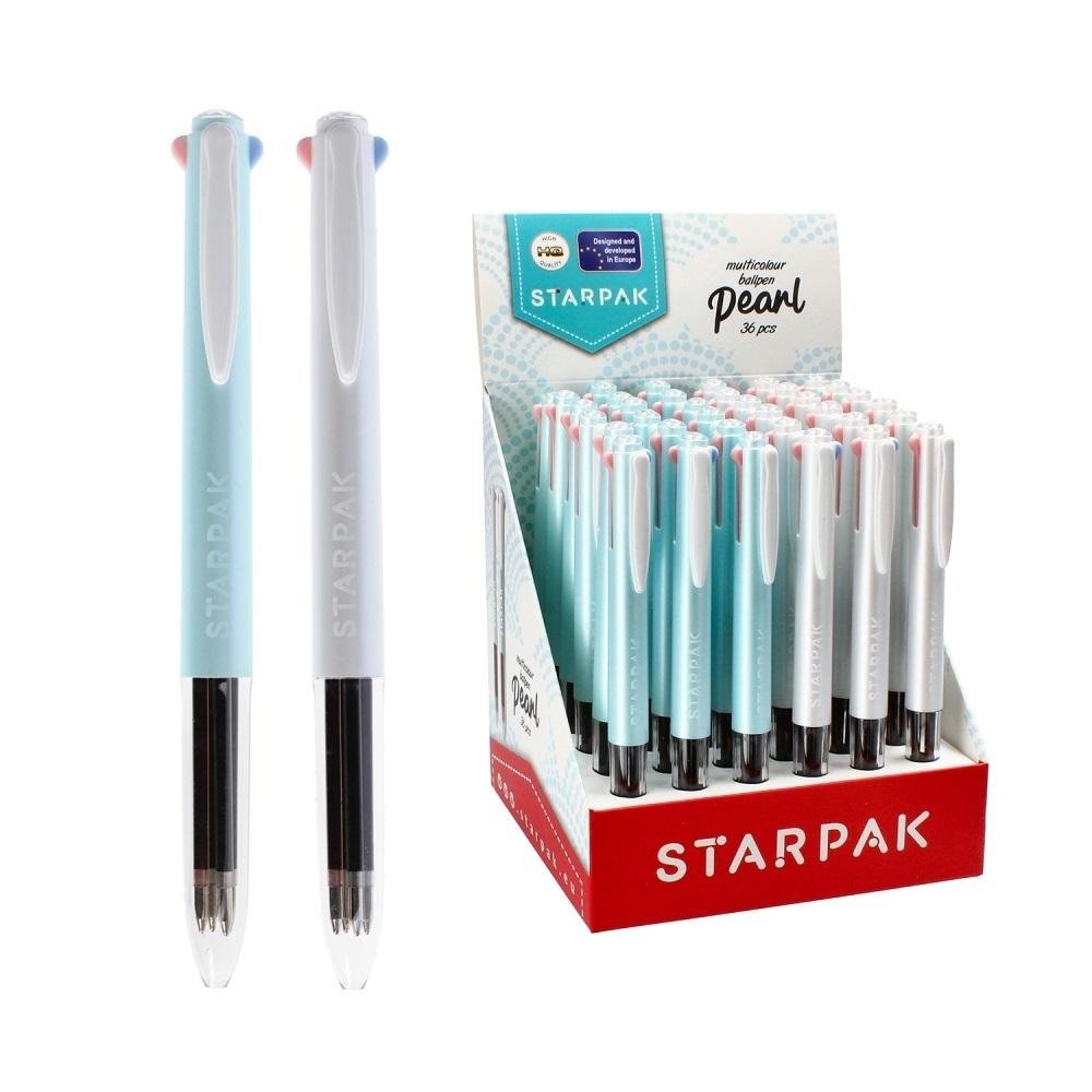 Długopis automatyczny z kolekcji Starpak dedykowanej dla szkoły i biura. Wielokolorowy plastikowy długopis piszący w trzech kolorach czerwonym, zielonym i niebieskim. Ciekawy design długopisu kolor turkusu oraz perłowej bieli dodatkowo zachęci cie byś miał go w swoim piórniku.Grubość linii pisania 0,7 mm. Zapoznaj się również z innymi produktami Starpak dedykowanymi dla szkoły i biura! Produkt nieodpowiedni dla dzieci poniżej 3 roku życia.