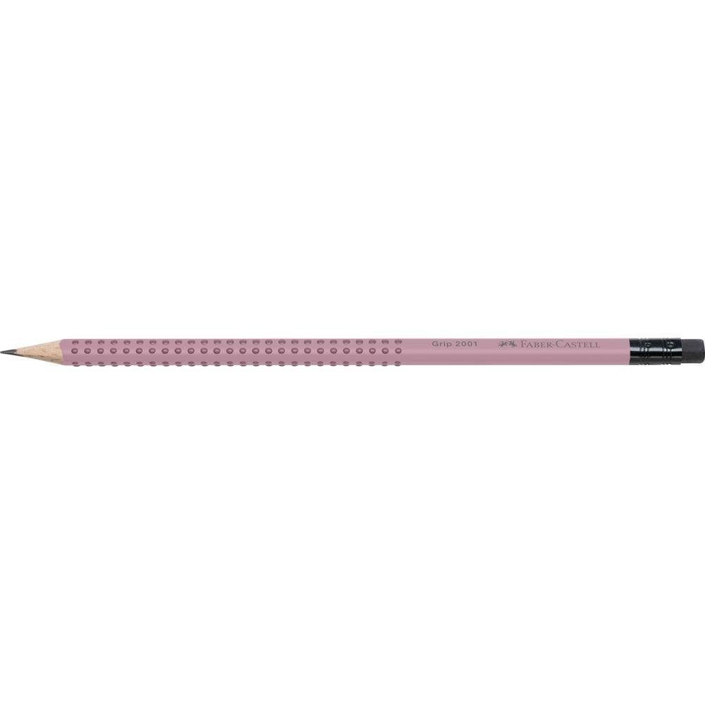 Ołówek grafitowy Grip 2001 Faber-Castell w kolorze różowym. Nawet w czasach zdominowanych przez komputery, telefony i internet, ołówek wciąż pozostaje nieodłącznym towarzyszem codzienności. To doskonałe w swojej prostocie narzędzie. Z wbudowaną gumką do wymazywania. Ergonomiczny trójkątny kształt i charakterystyczna dla tej serii opatentowana strefa Grip z małymi, antypoślizgowymi punktami zapewniają wysoki komfort użytkowania i niemęczące, wygodne pisanie i szkicowanie. Odpowiedni również dla leworęcznych. Z odpornym na pękanie grafitem o stopniu twardości B, dzięki bezpiecznemu procesowi wiązania (SV). Wykonany z certyfikowanego drewna pochodzącego ze zrównoważonego i odpowiedzialnie zarządzanego leśnictwa. Powierzchnia pokryta lakierem na bazie wody bezpiecznym dla środowiska i zdrowia dzieci. Produkcja neutralna pod względem emisji dwutlenku węgla.