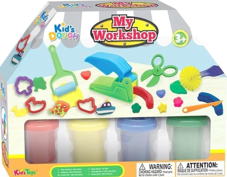 Zestaw masy plastycznej do zabawy. W zestawie znajdują się 4 kolory masy plastycznej z formami do wyciskania z nożyczkami, wałkiem, nożem. Taka zabawa rozwija u dzieci wyobraźnię, ćwiczy dziecięce paluszki. Produkt zapakowany w kartonowe opakowanie z okienkiem. Podane wymiary są wymiarami...