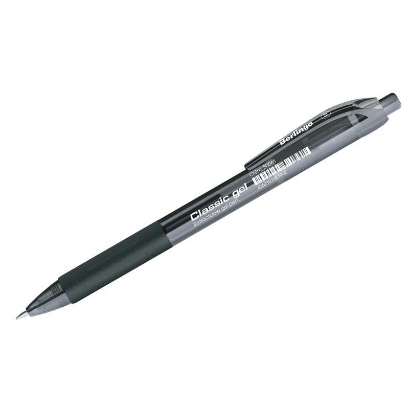 Żelowy długopis Berlingo Classic Gel z klipsem, w przyciemnianej czarnej obudowie. Kolor atramentu jest czarny. Średnica kulki wynosi 0,5 mm, co daje cienką, smukłą linię. Miękki gumowy uchwyt zapobiega ślizganiu się palców podczas pisania i zwiększa komfort pisania. Żel pigmentowy nie blaknie przez długi czas. Szerokość linii pisania: 0,4 mm. Długość pisania 500 m.