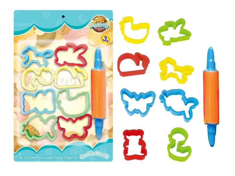 Kolorowe akcesoria kuchenne tj.: wałek do ciasta i foremki do ciasta (8szt). Spraw aby Twoje dziecko poczuło się jak w kuchni. Zestaw w połączeniu z masą plastyczną będzie idealnym dopełnieniem i pomoże dzieciom rozwijać swoją kreatywność oraz umiejętności manualne. Produkt zapakowany w kartonowe podstawkę z przezroczystym kloszem. Zabawka dla dzieci od 3 lat. Podane wymiary są wymiarami opakowania.