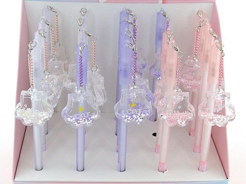 długopis z zawieszką - łapka kocia z płynnym brokatem, display 20szt; 21x18x13,5cm, Box číst celé