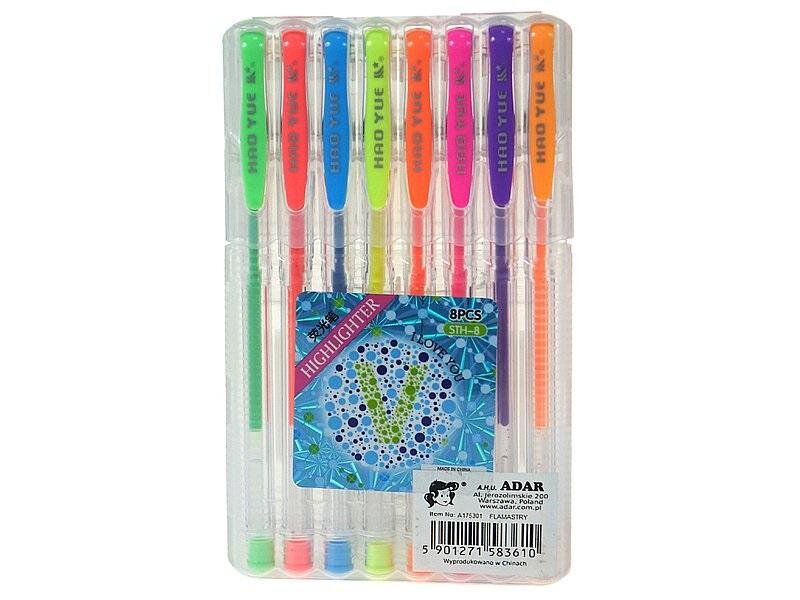 zestaw 8 żelowych długopisów, z brokatem; PVC číst celé