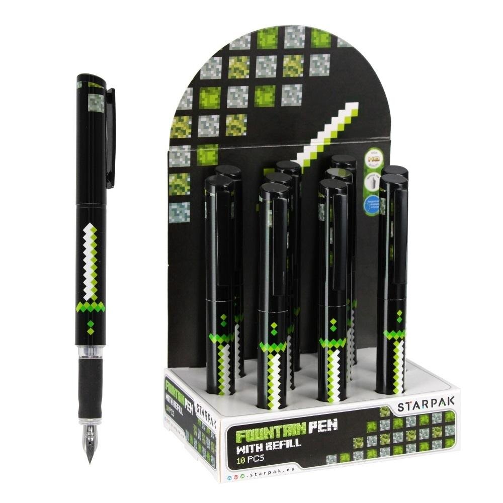 Pióro wieczne Pixel STARPAK pakowane w display po 10 szt. to niezbędny element wyposażenia twojego dziecka. Pióro wieczne na naboje, o oryginalnym, atrakcyjnym kształcie i wykończeniach. Grubość pióra dostosowana do dłoni dziecka. Zapoznaj się również z innymi produktami dedykowanymi biurze i szkole! W piórze znajduje się miejsce na zapasowy wkład, dzięki czemu Twojemu dziecku nigdy nie zabraknie atramentu w trakcie pisania. Pióro w dziecięcej, kolorowej grafice zainteresuje każdego szkolnego zucha. Pióra pakowane w przeźroczysty display po 10 szt. Wykonane z trwałego plastiku. Produkt nieodpowiedni dla dzieci poniżej 3 lat. Wymiary produktu (pióro) 13 cm.