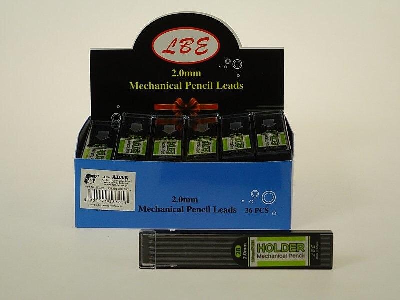 zestaw grafitów do ołówków automatycznych 2B, czarne, 13x2,5x0,5cm, display 36szt; 15,5x13x5cm, Box číst celé