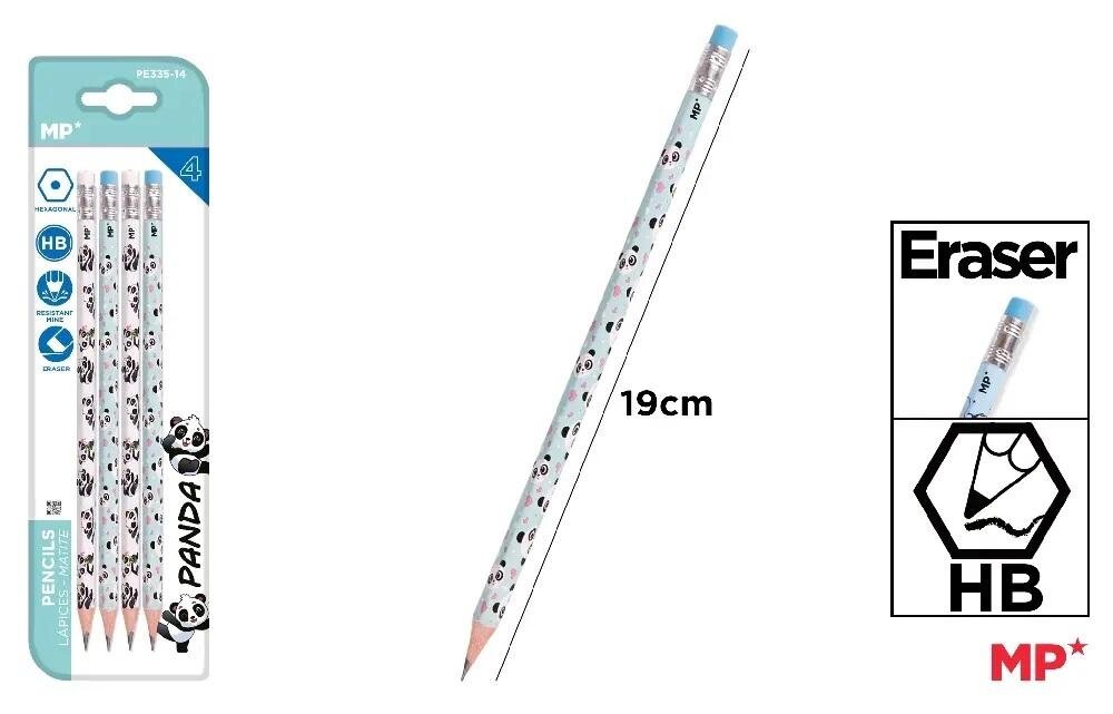 Ołówek z gumką HB 4szt Panda