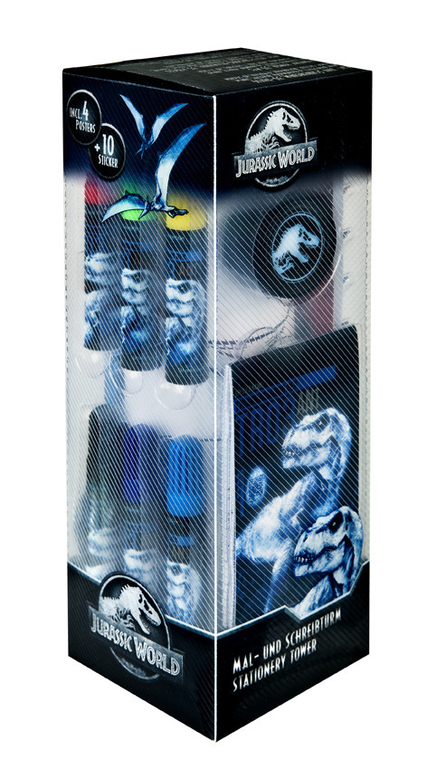Zestaw przyborów szkolnych - 35 elementów, stanowiących podstawowe wyposażenie każdego malucha. Starannie wykonany, złożony z 4 arkuszy do kolorowania, zestawu 10 naklejek,10 kredek, 6 markerów, ołówka, temperówki, gumki, linijki i notesika. Inspiracją jest tu największy filmowy hit ostatnich lat Jurassic World. Dzięki uroczym bohaterom szkoła może być fajna. Nieważne czy jesteś pierwszoklasistą czy piątoklasistą - potrzebujesz przyborów do szkolnej przygody.