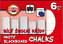 Sada 6 kusů školních bílých čtyřhranných kříd o rozměrech 12x12x100 mm, které jsou určeny pro psaní na školní tabule.