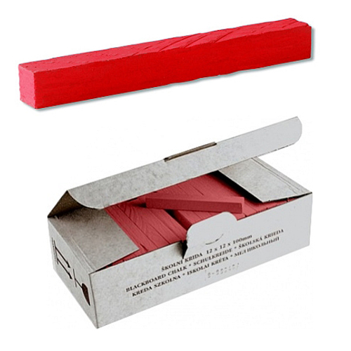 Školní křída v karmínové barvě. Křída na školní tabule, 4-hranná tyčinka 12x12x100mm. Balení obsahuje 100 kusů. číst celé