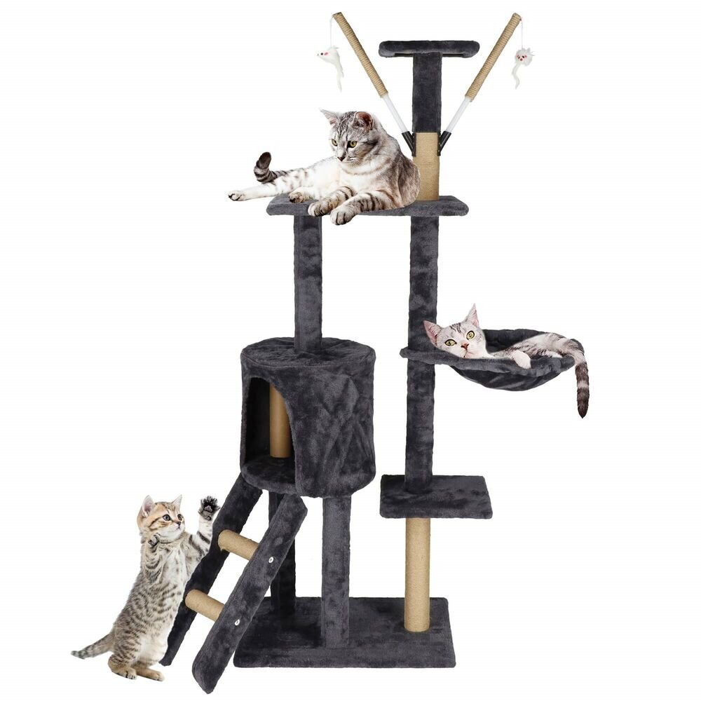 Vysoké víceúrovňové kočičí škrabadlo se šesti patry. Nabízí stabilní a odolnou konstrukci, příjemný potah, pohodlné schody vedoucí do útulného domečku, vyvýšenou postel, velké množství sisalových ploch a dvě chlupaté myšky na provázku pro zábavu. Součástí jsou také odpočívadla pro pohodlí vaší...