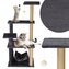 Vysoké, víceúrovňové kočičí škrabadlo s pěti patry. Nabízí stabilní a odolnou konstrukci, příjemný sametový potah, závěsné houpací křeslo, sisalovou tyč na škrábání, chlupatý míček na provázku a odpočívadla pro pohodlný odpočinek vaší kočky.