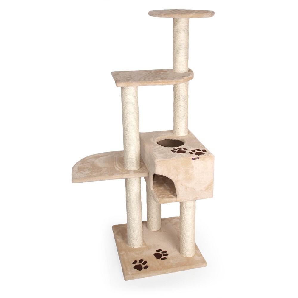 Stabilní robustní škrábadlo pro kočky• 3 patra a boudička se dvěma průlezy• zesílené sisalové sloupky o průměru 8,5 cm• plyš v pískové barvěRozměry:• základna: 45 x 45 cm• celková šířka: 70 cm• výška: 140 cm číst celé