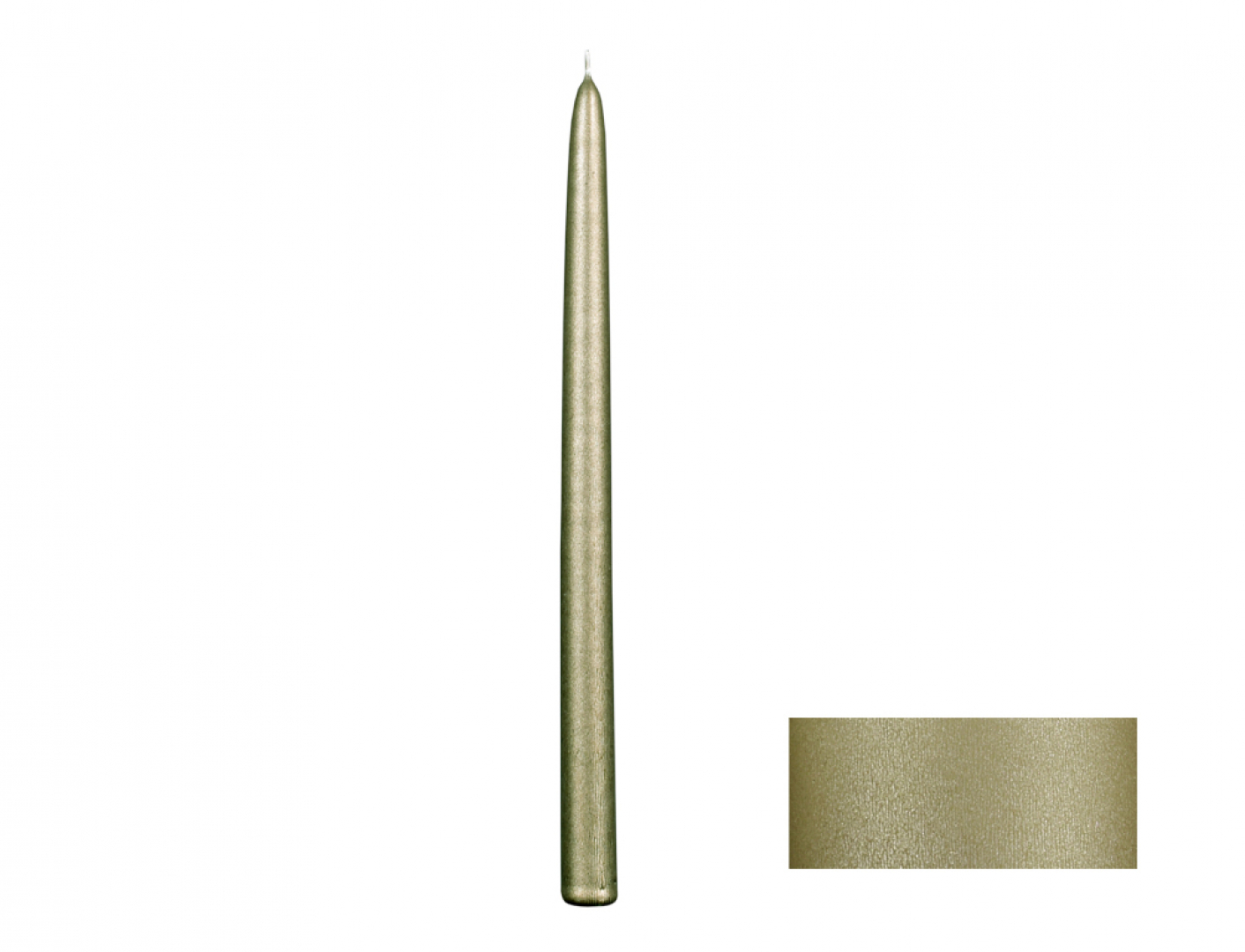 Stolní svíčka kónického tvaru. Její povrch je zdobený jemným škrábáním. Má prémiový vzhled, který pozdvihne každou dekoraci či vazbu. Doba hoření: 8 hodin. Rozměry: spodní průměr 2 cm, výška 29 cm. Barva: chromová zlatá. číst celé