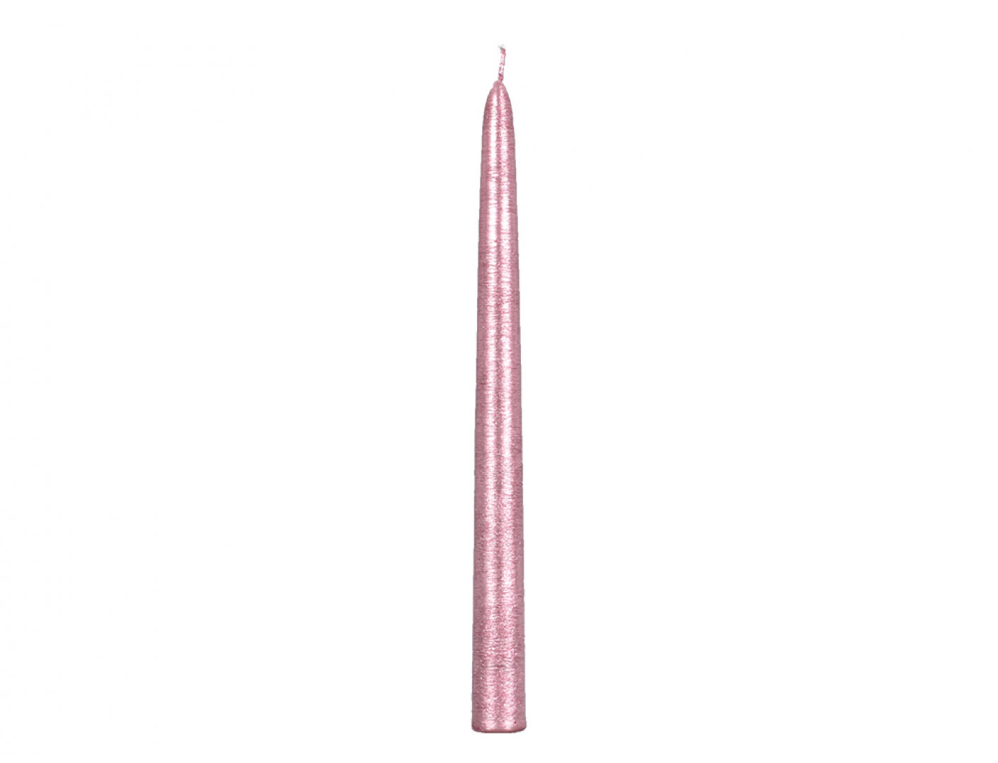 Stolní svíčka kónická. Má metalický lesklý povrch zdobený škrábáním. Dekorativní vzhled ozvláštní každý vánoční svícen či věnec. Rozměry: spodní průměr: 2 cm, výška: 24 cm. Doba hoření: 6 hodin. Barva: růžovozlatá.