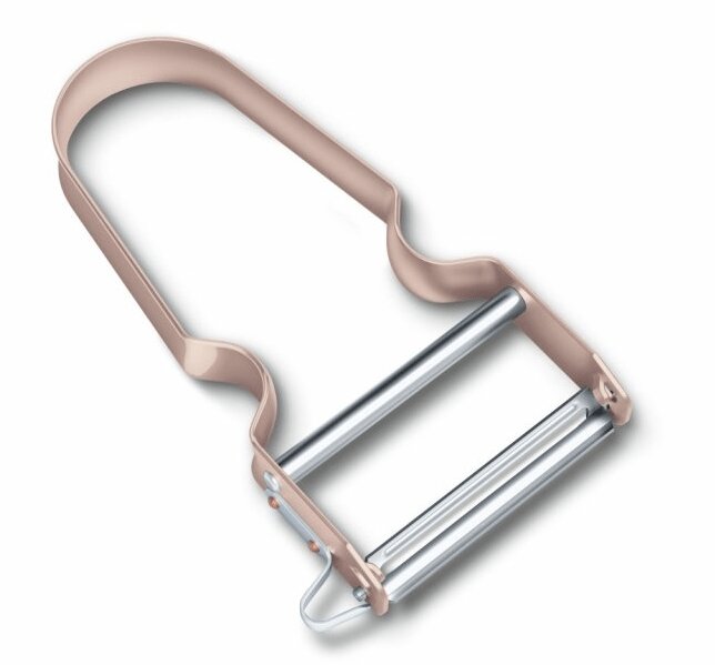 Ikonická kuchynská škrabka Victorinox Rex v levaduľovom farebnom prevedení, s minimalistickým dizajnom. Zachováva vitamíny v potravinách tým, že ich lúpe blízko dužiny a minimalizuje tak odpad.