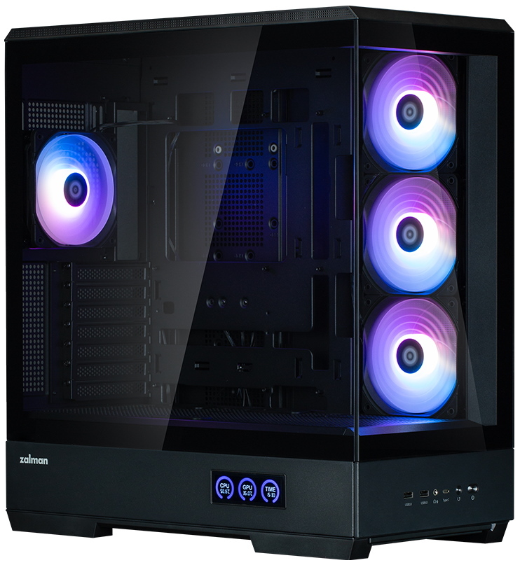 Zalman skříň P50 DS Middle Tower 4x120mm ARGB fan 2x USB 3.0 USB-C panoramatická černá