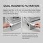 Magnetické prachové filtry na střeše a základně centrální plovoucí ventilační struktury proaktivně zabraňují hromadění prachu a nečistot, udržují čistý a nepřerušovaný proud vzduchu, aniž by narušovaly zavěšený design.