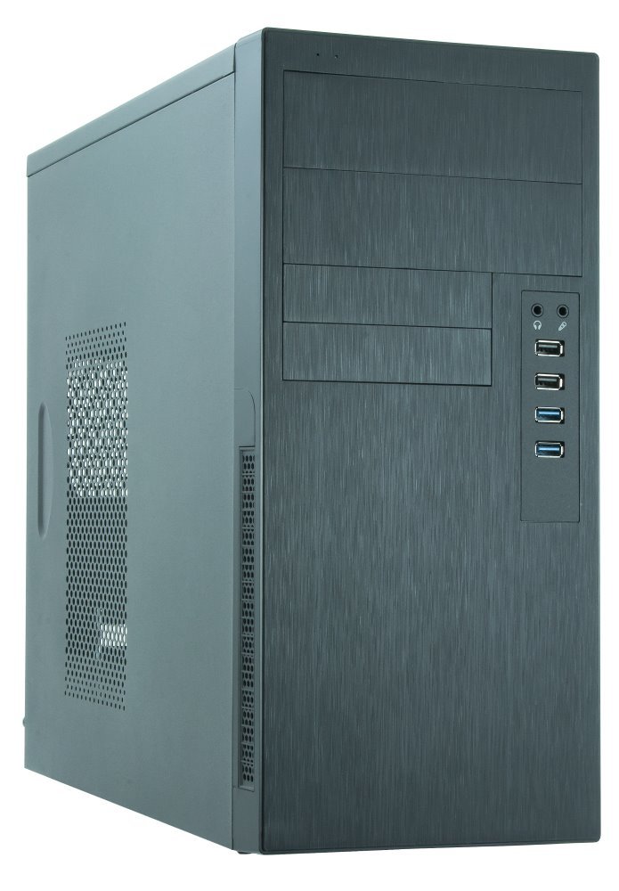 Počítačová skříň formátu Mini Tower nabízí na předním panelu dva porty USB 3.0, dva porty USB 2.0, konektor pro sluchátka a konektor pro mikrofon. Dipsonuje dvěma externími pozicemi formátu 5,25" a dvěma pozicemi formátu 3,5". Skříň je dodávána s 350 W zdrojem GPB-350S.