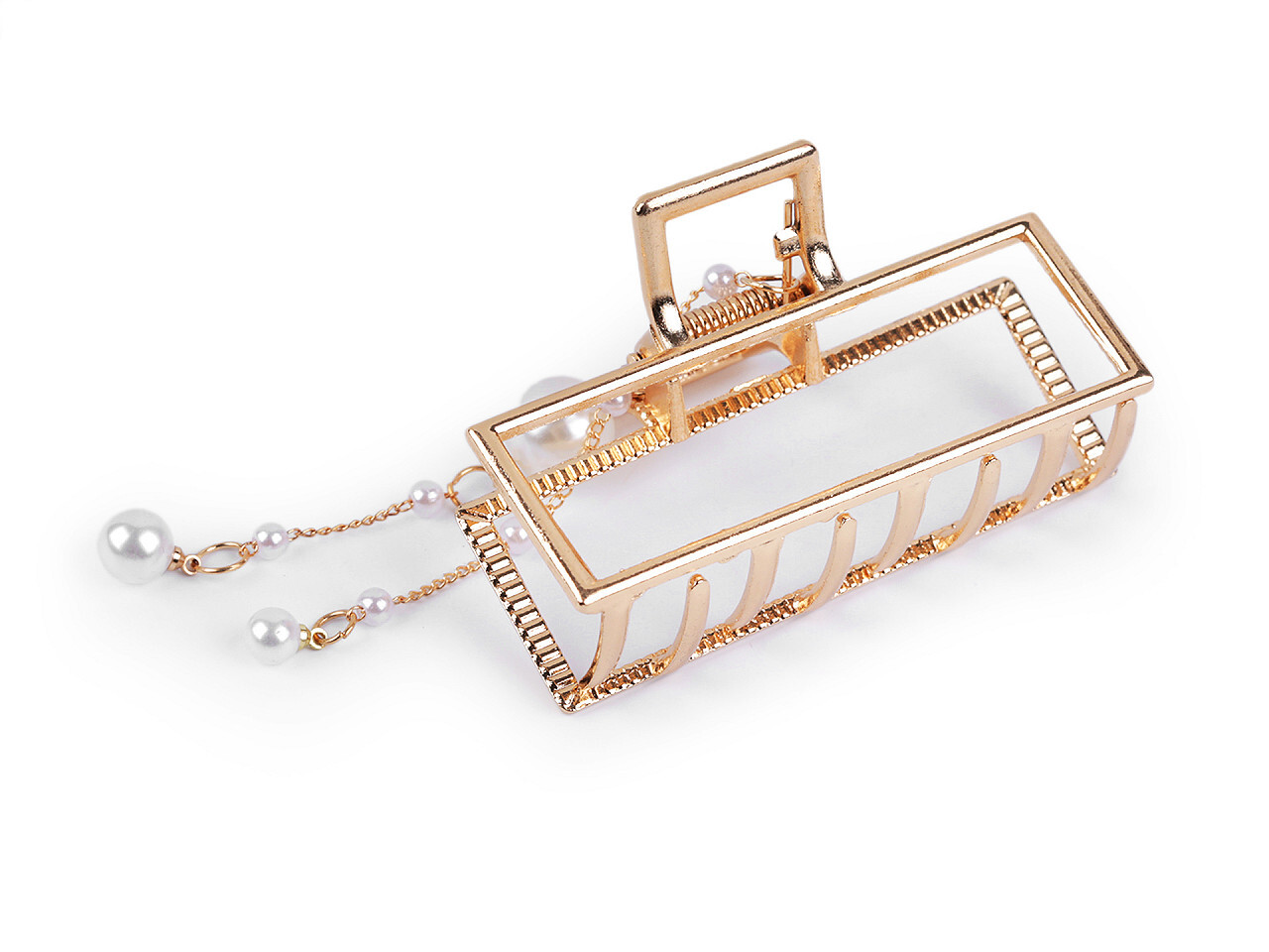 Skřipec do vlasů kovový s perlovým přívěskem - 1 ks - 2 zlatá