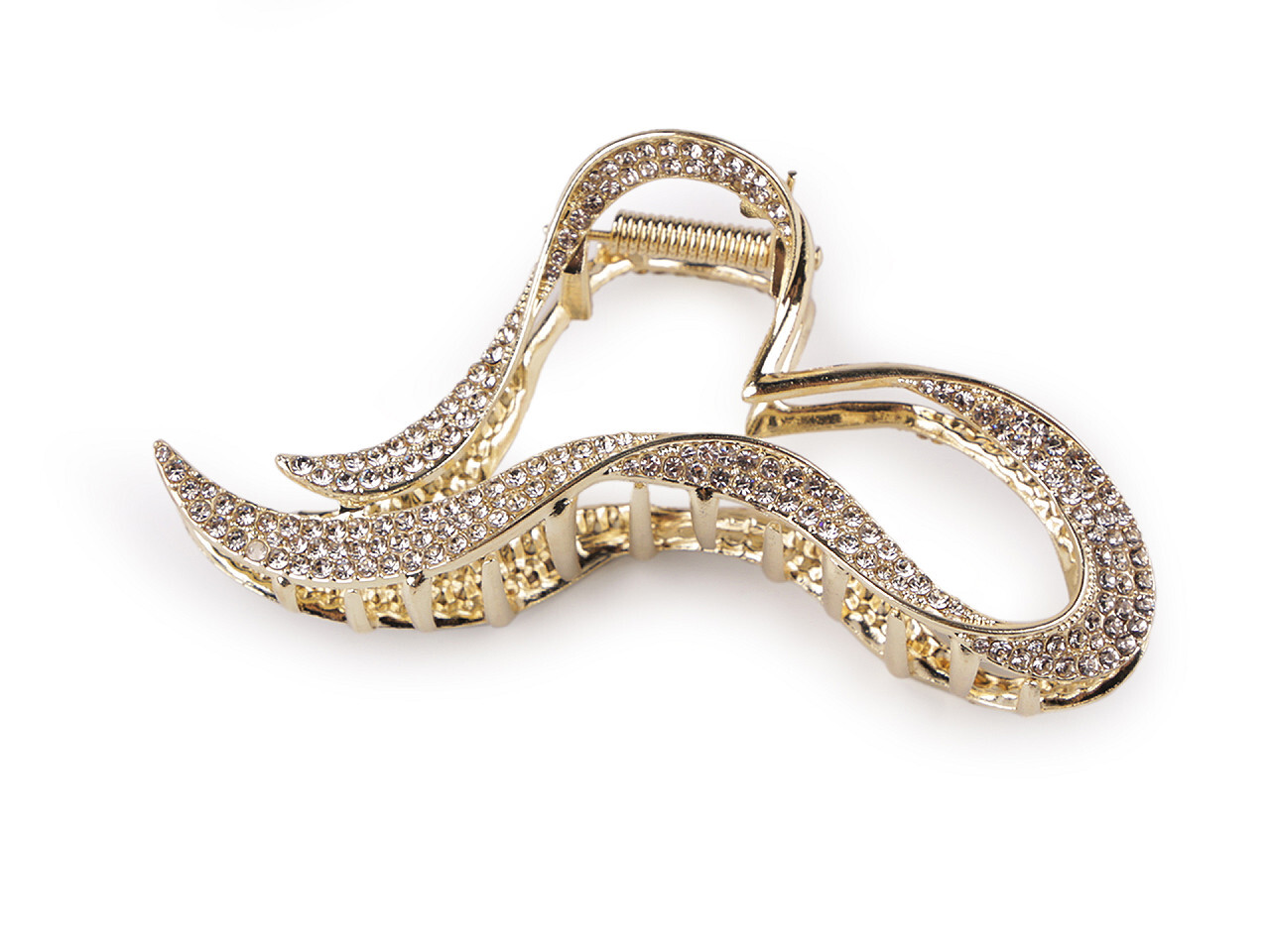 Skřipec do vlasů kovový s broušenými kamínky - 1 ks - 2 zlatá sv.