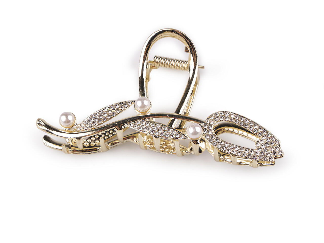 Skřipec do vlasů kovový s broušenými kamínky - 1 ks - 3 zlatá sv.