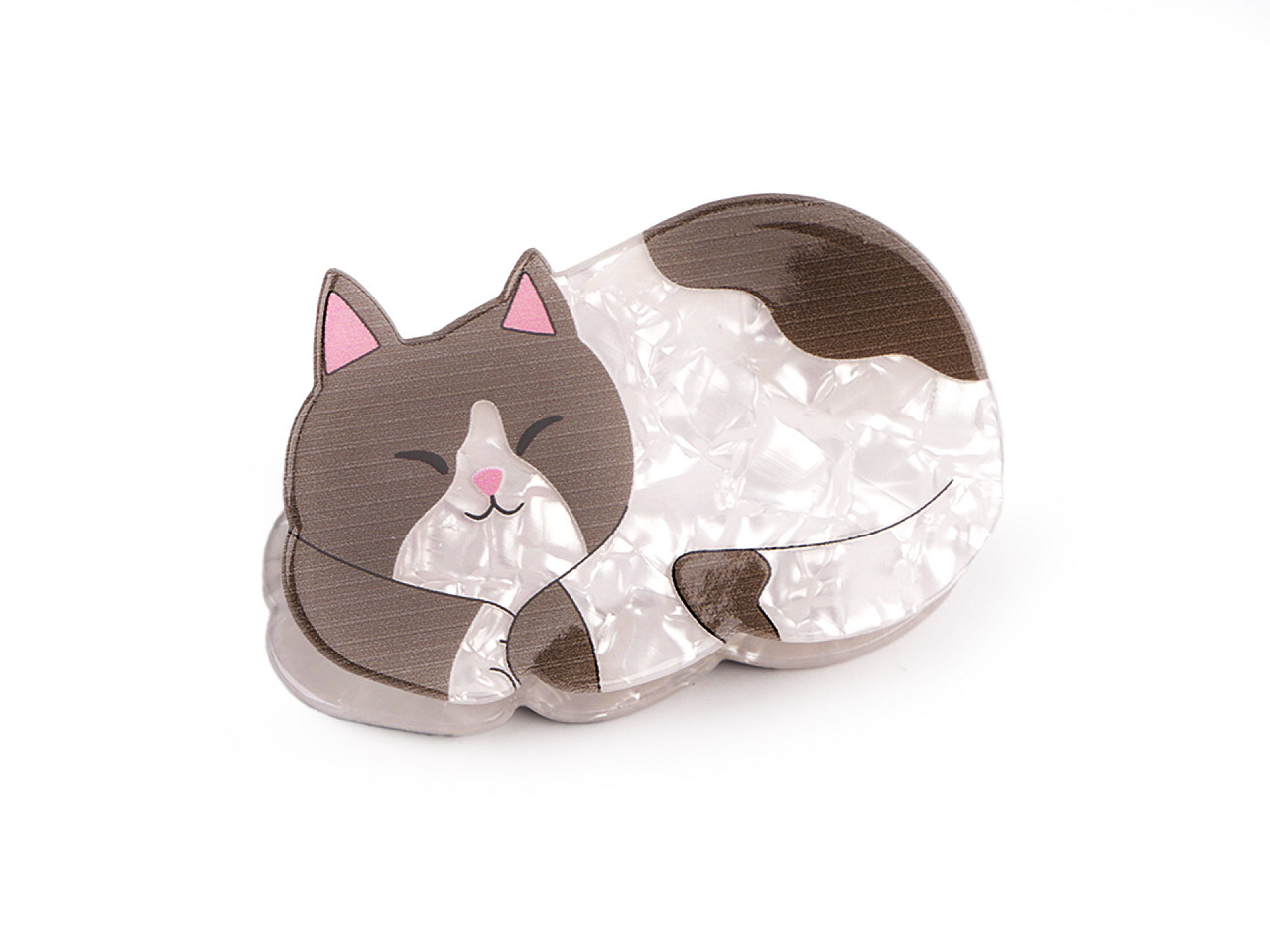 Skřipec do vlasů kočka - 1 ks - 2 béžová tmavá