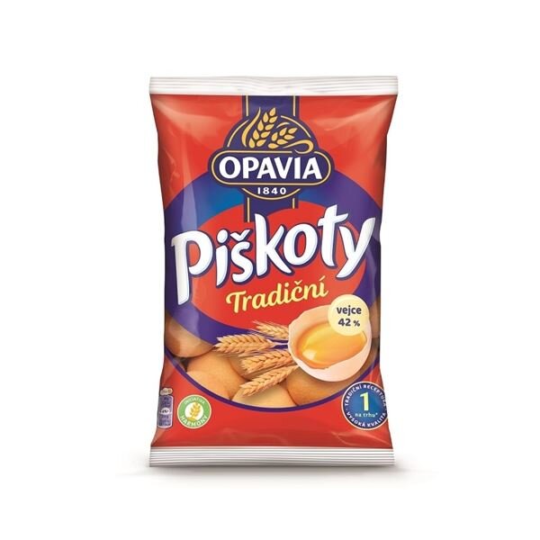 Vyzkoušejte Piškoty Opavia a dopřejte si každodenní potěšení v podobě tradiční české delikatesy v praktickém balení o hmotnosti 110 gramů.